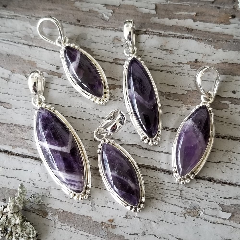 Sweet Simplicity - Chevron Amethyst Pendants in Sterling Silver