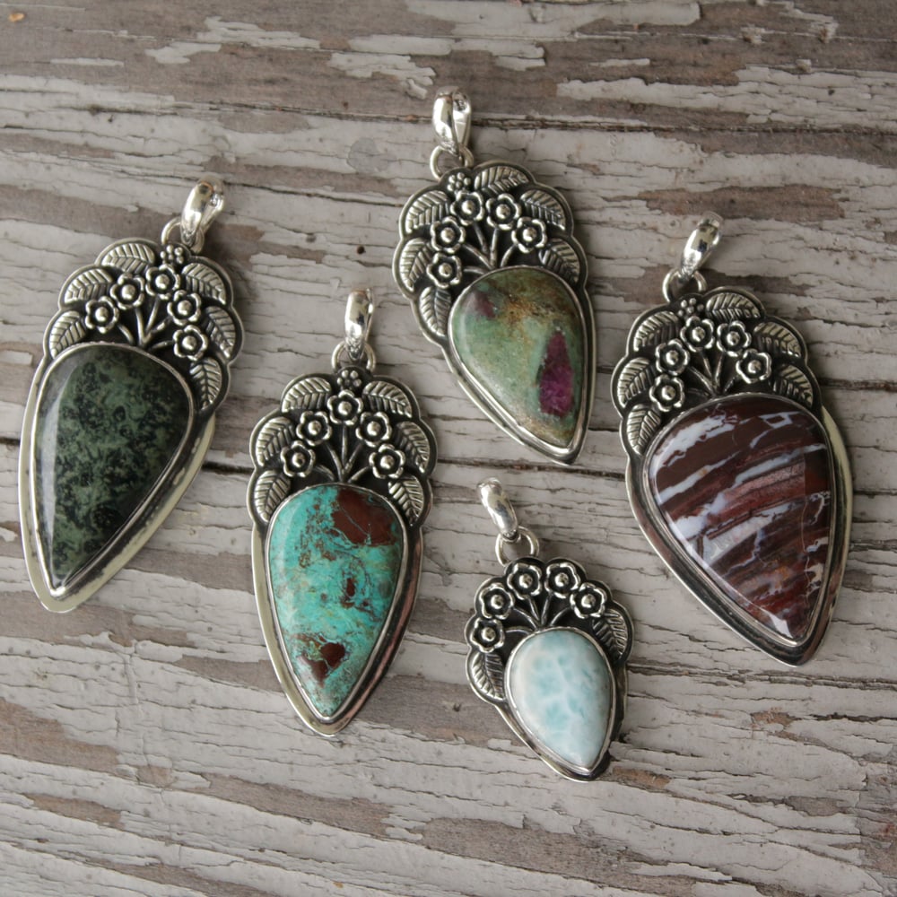 Wild Roses - Gemstone Pendants in Sterling Silver