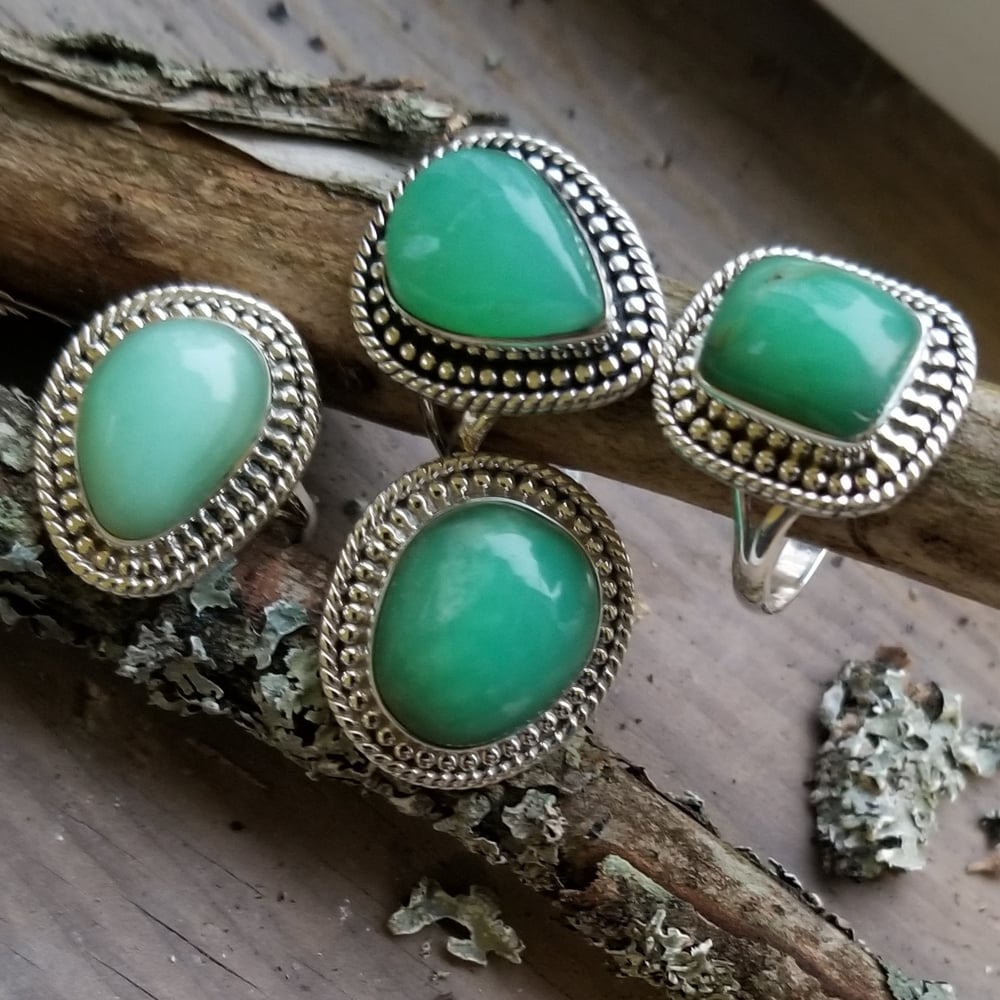 Tortuga - Chrysoprase Rings in Sterling Silver