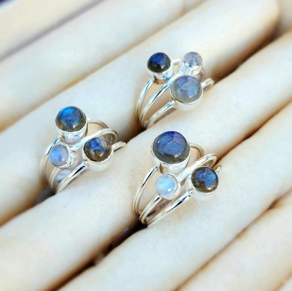 Orbiti - Labradorite & Moonstone Ring in Sterling Silver