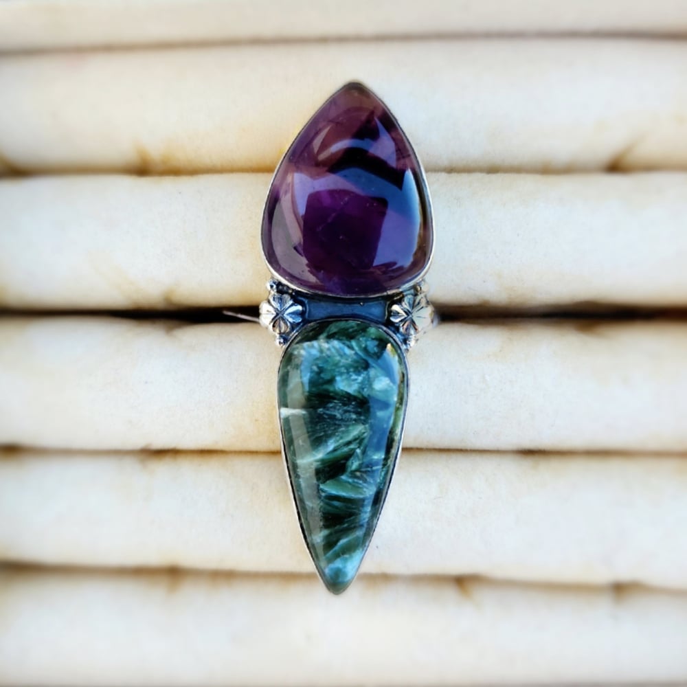Larimar & Charoite Quad Stone Pendant in Sterling