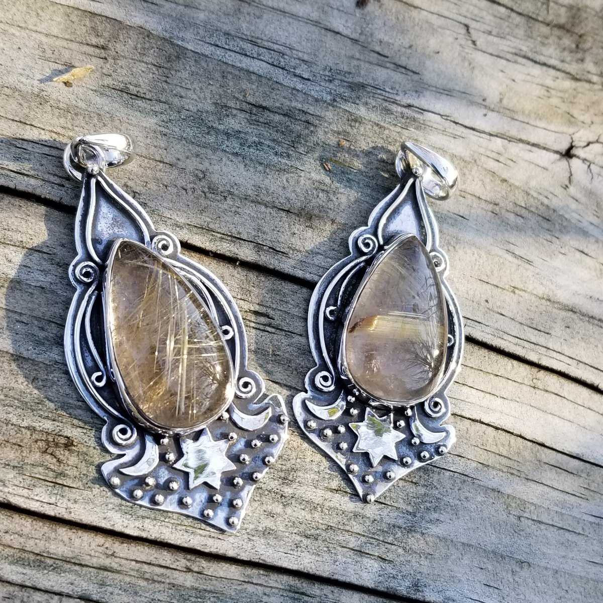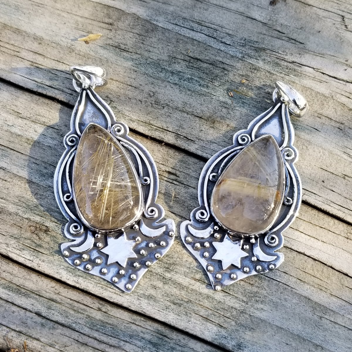 Free spirit, gypsy, magic, wonder, all this comes to mind with these mystical Golden Rutile in Quartz Pendants set in Sterling Silver.
